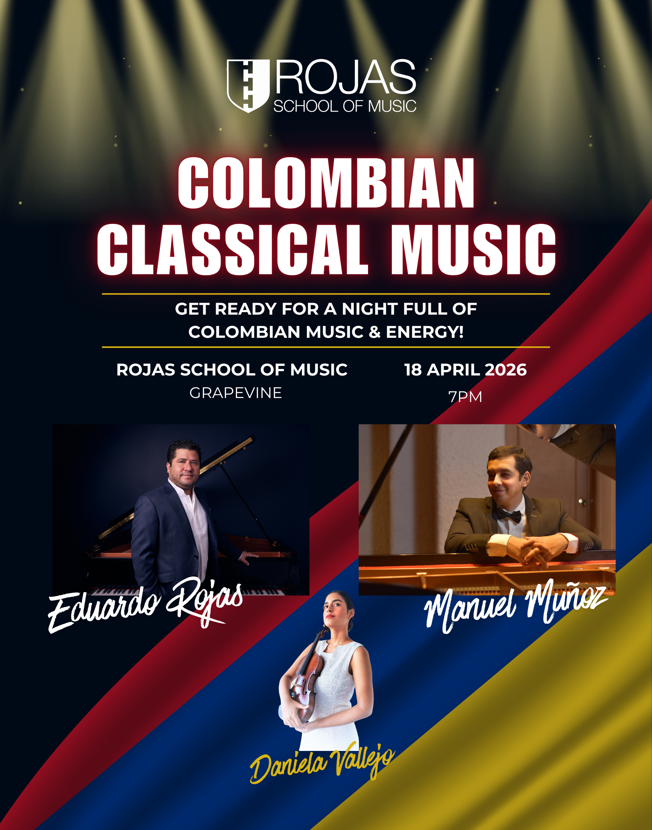 Join us for a special evening at the Rojas Family Concert! Experience the vibrant rhythms and rich traditions of Colombian Classical music performed live by our Founder & CEO, Eduardo Rojas, alongside teachers Manuel Muñoz and Daniela Vallejo.
